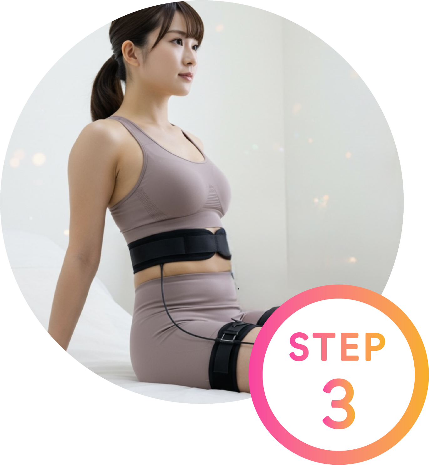 基本のトレーニングは3〜5分、EMSが15分前後と短時間で完結します。お忙しい方でも無理なく継続できるのが特長です。